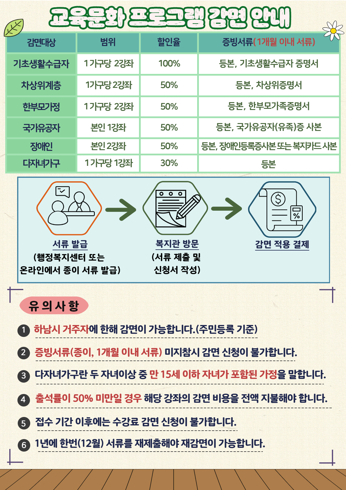 감면 대상자는 접수 기간 내 증빙서류(종이 서류, 1개월 이내 발급)를
