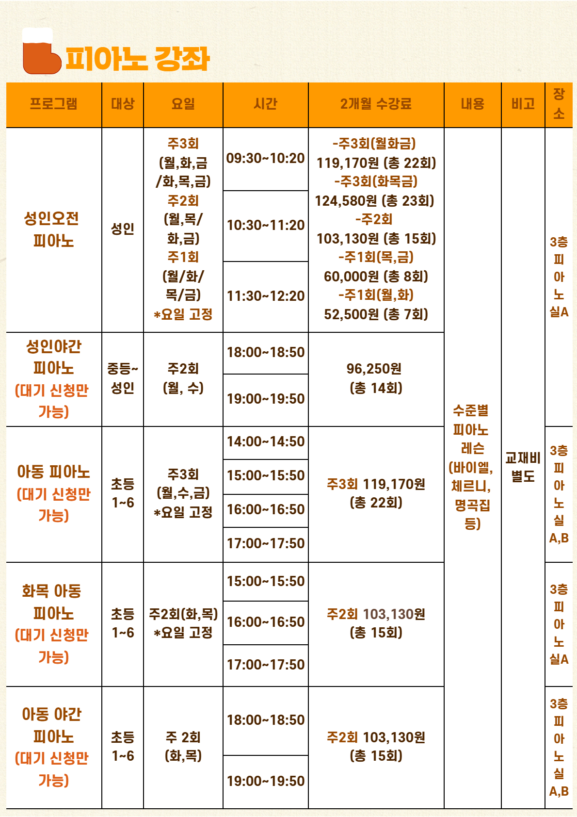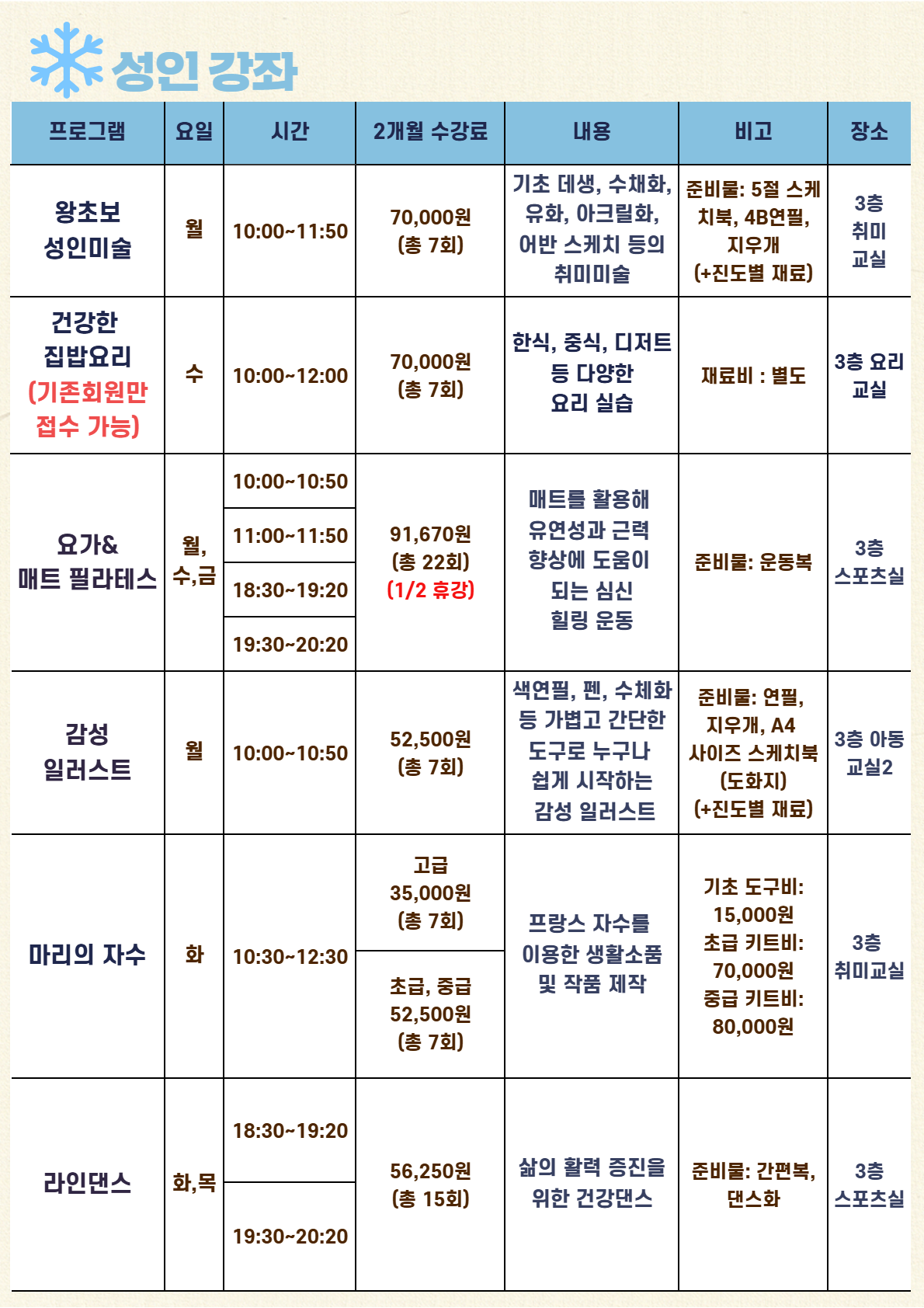 신규회원은 강좌별 잔여인원에 한해 접수 가능합니다.