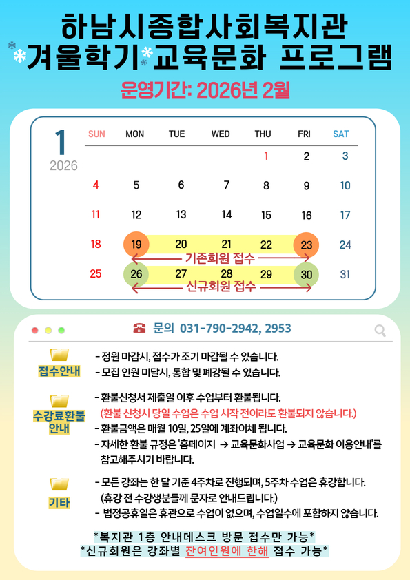 * 신규회원 접수: 1/26(월)~1/30(금)
