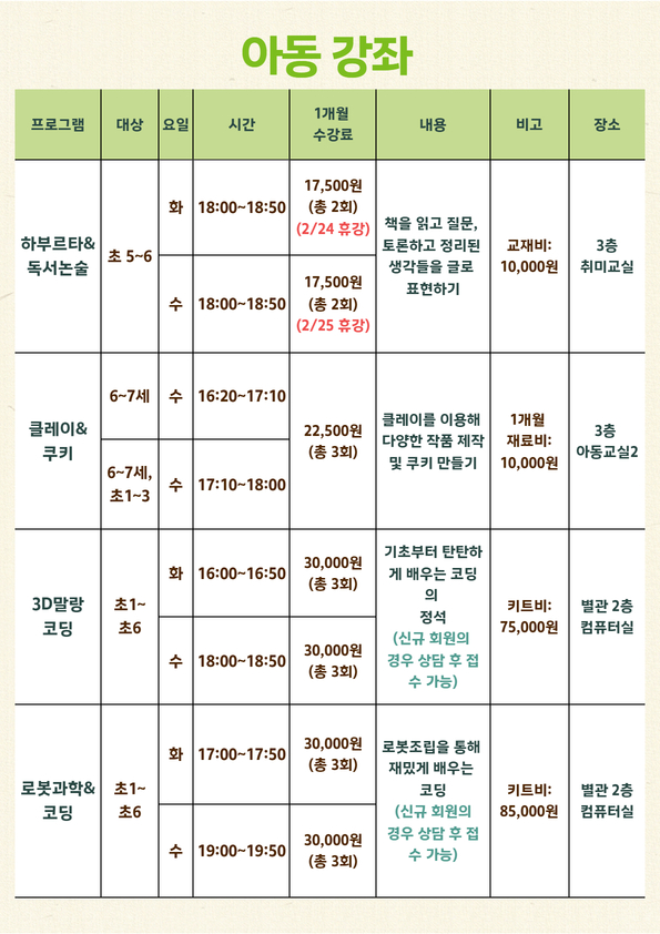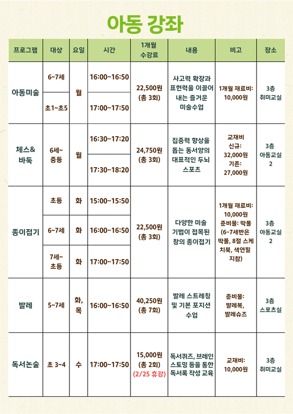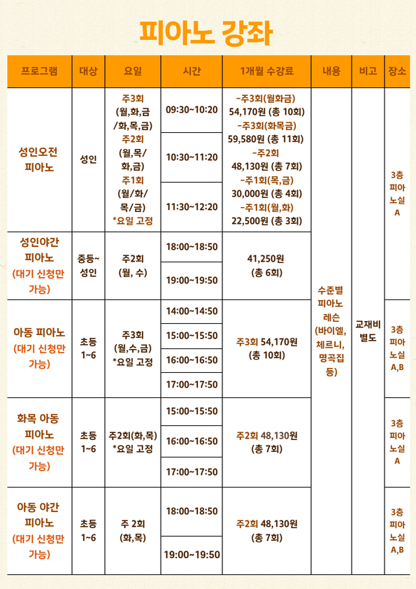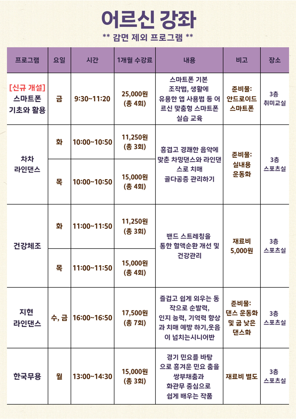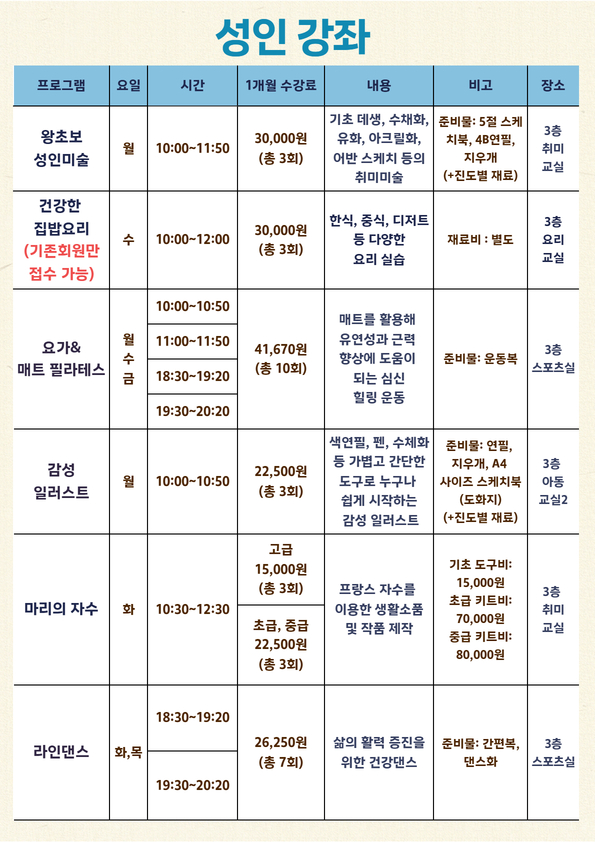 신규회원은 강좌별 잔여인원에 한해 접수 가능합니다.