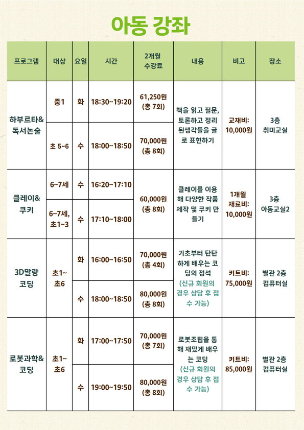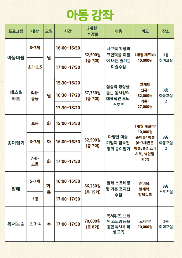 신규회원은 강좌별 잔여인원에 한해 접수 가능합니다.