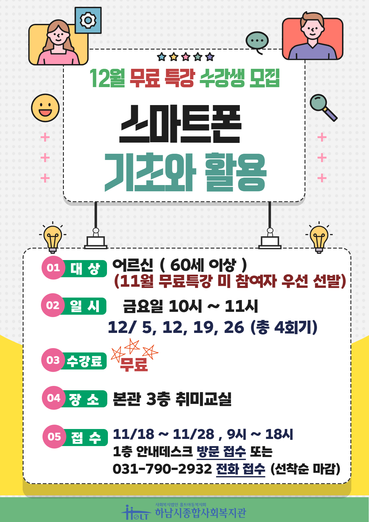 대상: 60세 이상 어르신 (11월 무료특강 미참여자 우선 선발)