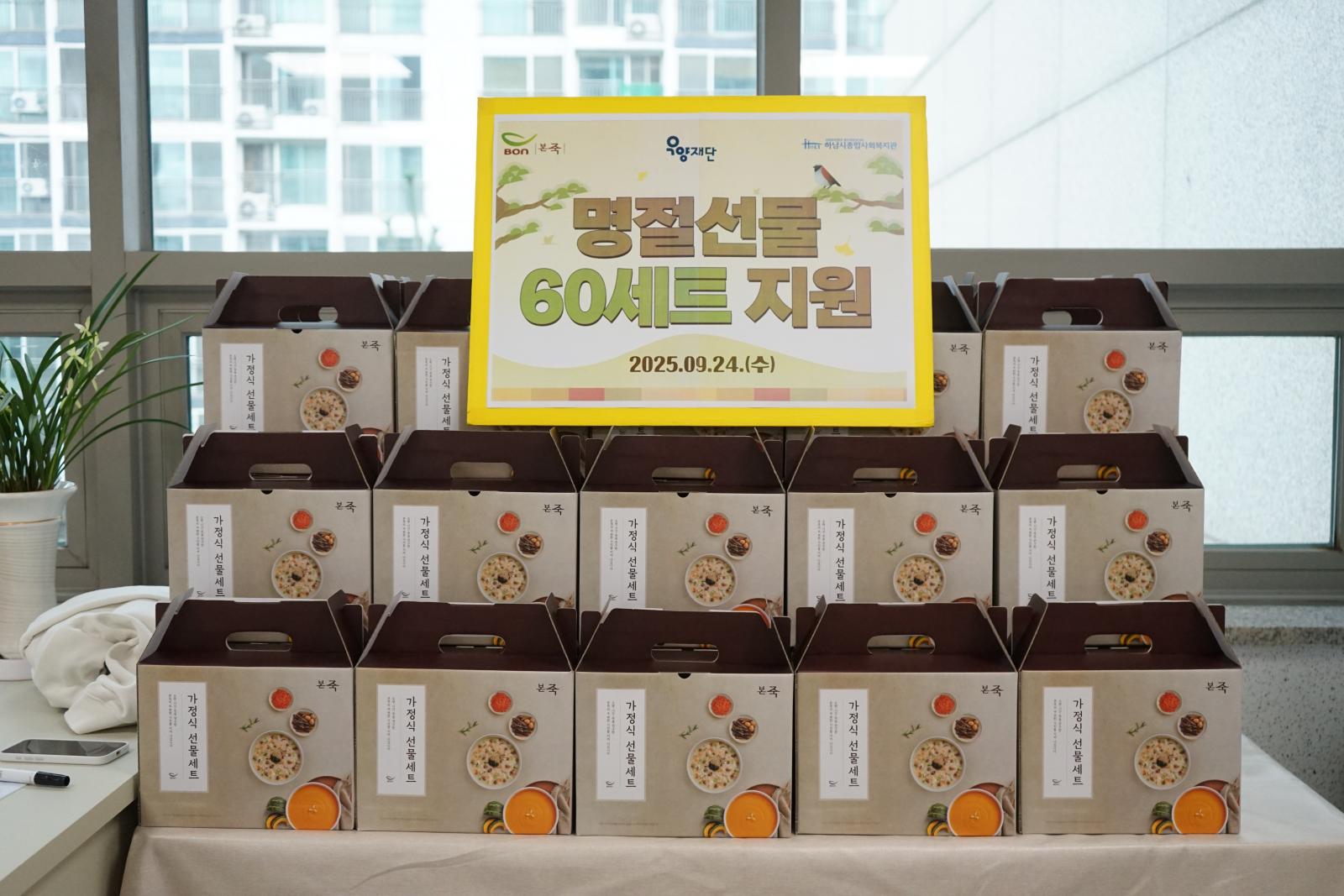 본죽의 따뜻한 후원으로 어르신 60분께 명절 선물세트를 전해드렸습니다.