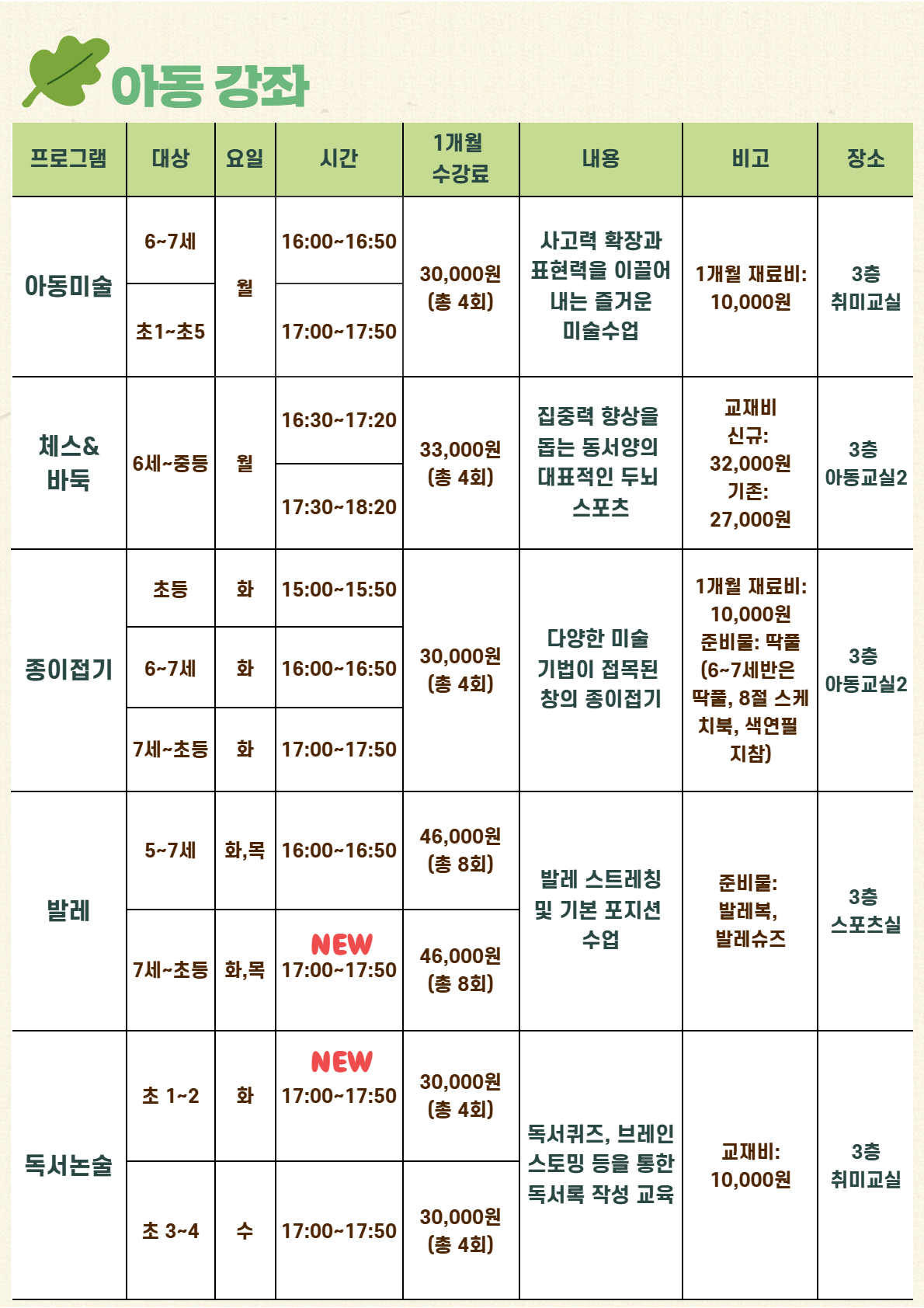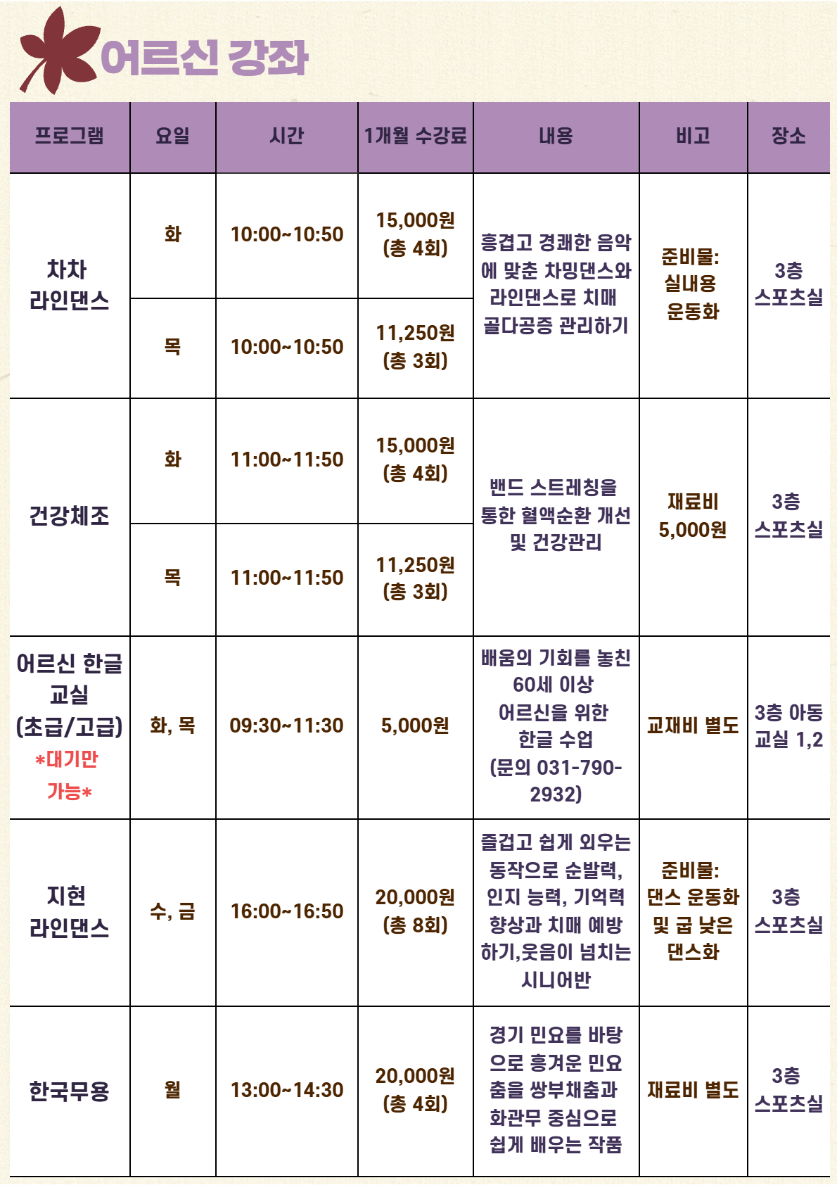 신규회원은 강좌별 잔여인원에 한해 접수 가능합니다.