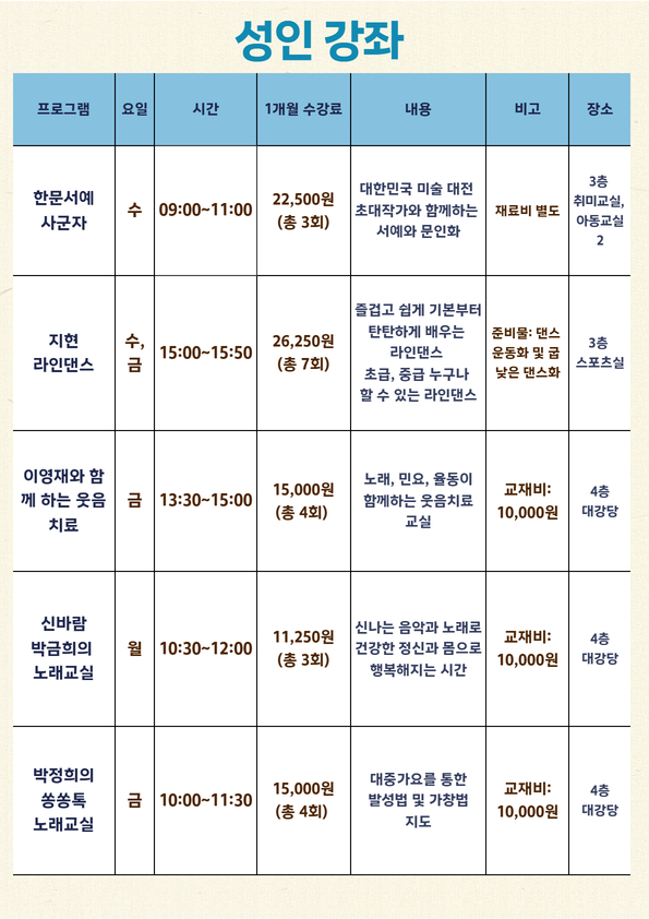 신규회원은 강좌별 잔여인원에 한해 접수 가능합니다.