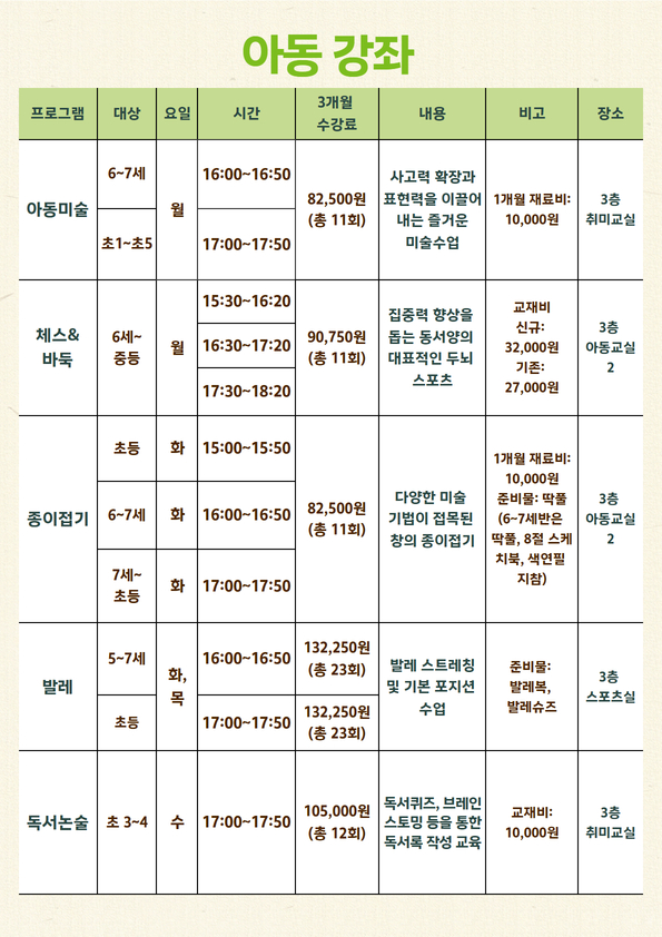 신규회원은 강좌별 잔여인원에 한해 접수 가능합니다.