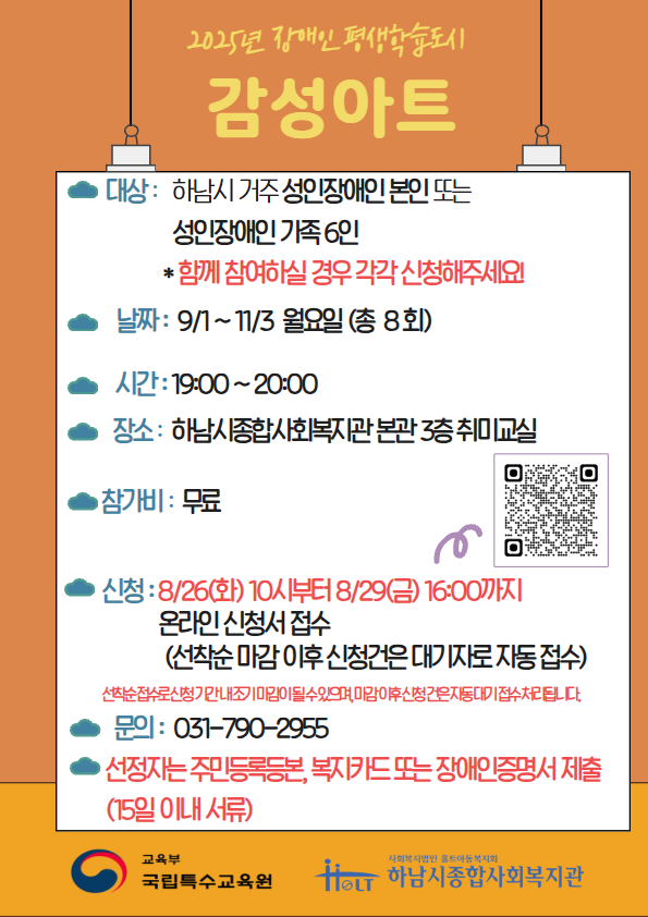 대상 : 하남시 거주 성인장애인 또는 성인장애인 가족 6명 (신규참여자 우선 선발)