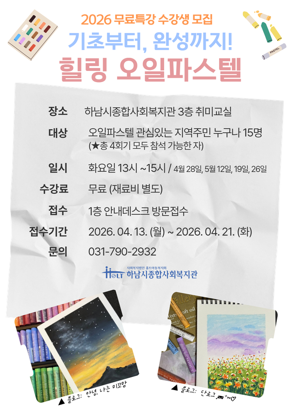 - 대상: 오일파스텔 관심있는 지역주민 누구나! 선착순 15명