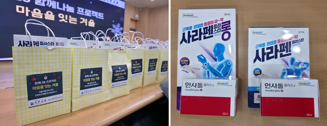 서울서문교회에서는 인사돌(100정)과 파스를(약 4,000,000원 상당)을