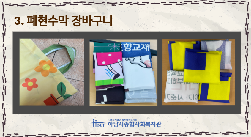 기존 폐현수막 장바구니에 이어서 자투리천 도시락 가방, 차양막, 물품 덮개 등 올해 새롭게 시도했던 것들을 되돌아보며,